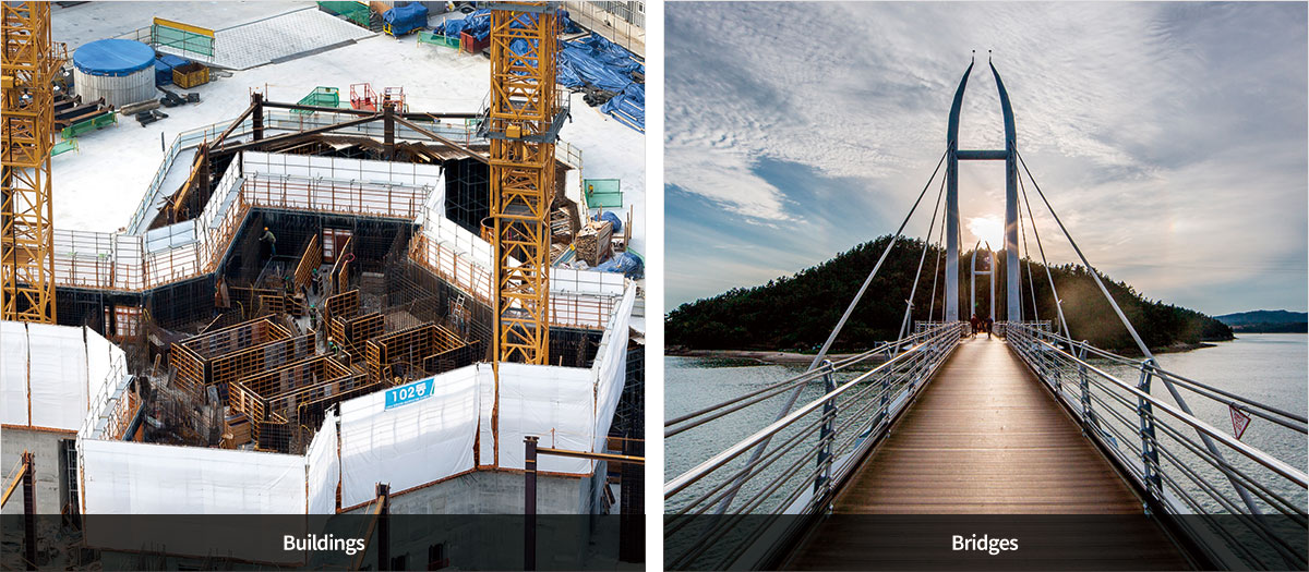 Hầu hết các tòa nhà, cầu và các công trình khác ngày nay đều được xây dựng bằng thép, bê tông cốt thép hoặc bê tông dự ứng lực.